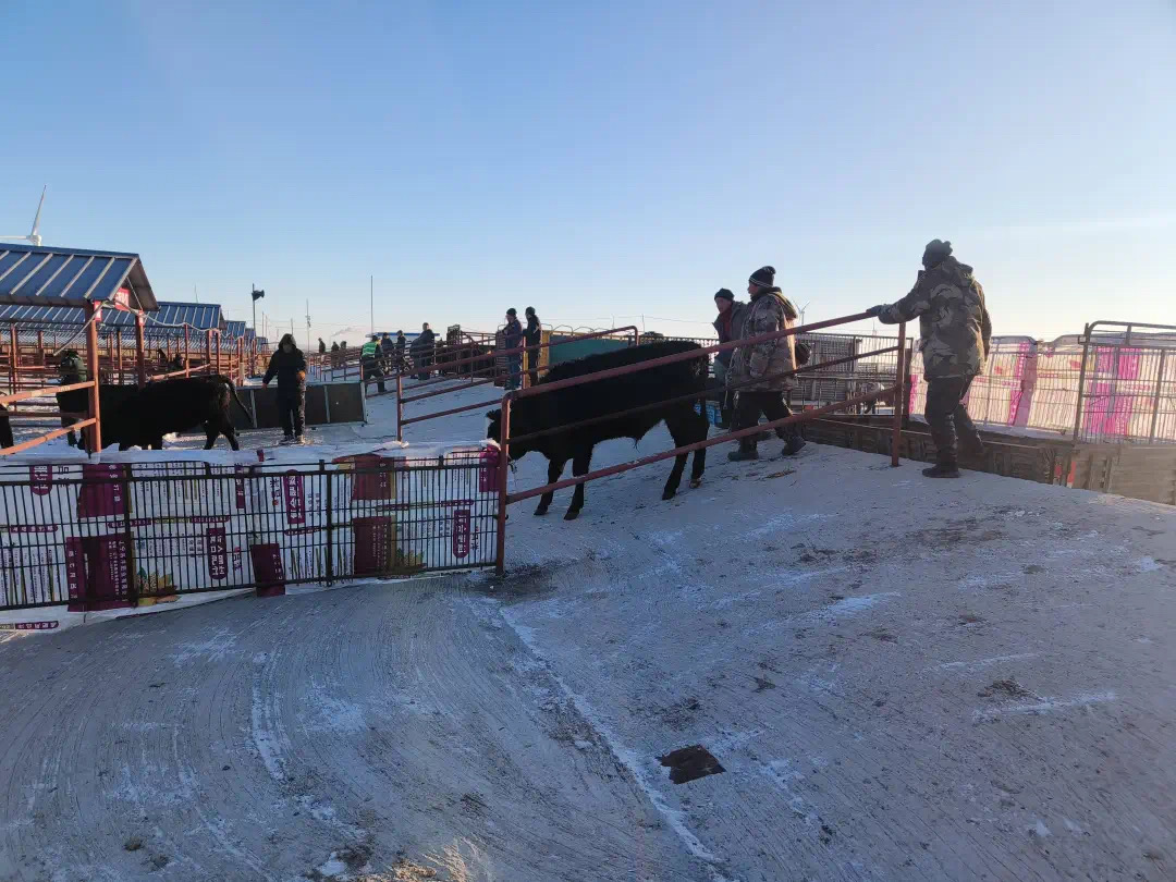走进活畜交易市场牲畜交易区,交易现场人声鼎沸,各种交易活动如火如荼,交易市场内有运营方派驻的引导人员、咨询员等,为广大牧户和客商全程提供服务保障,各地的和牛养殖户带着自家精心饲养的牲畜前来销售。当天龙江元盛和牛产业股份有限公司收购养殖户手中的繁改和牛共538头,交易金额达590万元。