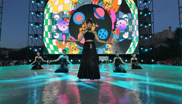 夜幕低垂,广场上宏伟的舞台灯光璀璨点亮。伴随着主持人激情洋溢的开场致辞,活动正式拉开序幕。伯都讷街道精心编排的舞蹈《嬉乐》率先引爆了现场的氛围,舞者手中鲜艳的红绸在广场中央翩翩起舞。随后,区文化馆的歌手刘贺以一曲《生而平凡》感动全场,观众纷纷举起手机,点亮一片星海,与歌声共同演绎着“平凡人亦是盛夏主角”的温馨故事。紧接着,双排键演奏的《铁血丹心》以现代科技感重新诠释了经典,少年们的精湛演出激起一阵阵热烈掌声。蒙古族舞曲《思念陪着鸿雁飞》带领市民仿佛步入了梦幻般的草原。激情四溢的曳步舞《我跟我痴心》更是将现场的气氛推向高潮。活动中穿插的两轮抽奖环节,一次又一次掀起热烈的氛围。手提奖品的李女士满脸喜悦:“带着孩子出来乘凉,意外地遇到了好运!”广场一侧,查干湖啤酒兑换点前排起了曲折的长队,冰镇的酒香在空气中弥漫,陌生人之间的碰杯与笑语,绘制出了城市中心最为动人的繁华图景。