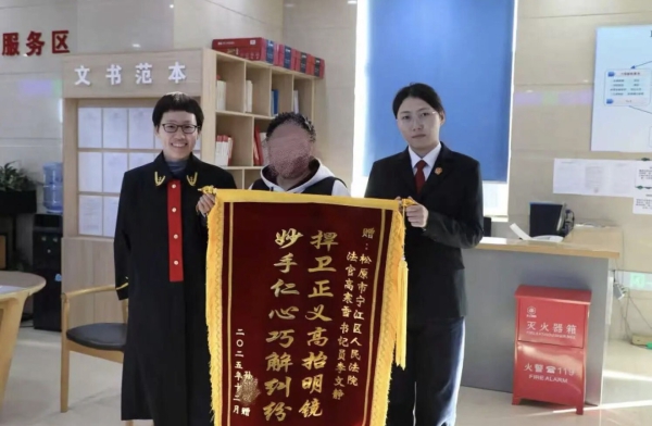 近日,松原市宁江区人民法院民事审判庭法官高寒雪、书记员李文静收到当事人孙某送来的一面写有“妙手仁心巧解纠纷,捍卫正义高抬明镜”的锦旗,表达对其在案件办理中倾心调解、司法为民的诚挚感谢。这面锦旗不仅承载着群众对法院工作的认可,也体现了宁江法院在践行司法为民宗旨、促进案结事了方面的积极成效,传递出温暖的司法正能量。