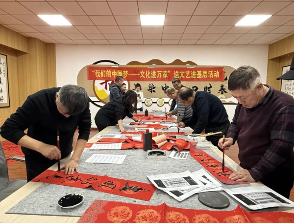 为持续推动“强基工程”,营造喜庆祥和的新春氛围,1月20日,“我们的中国梦——文化进万家”送文艺进基层书写春联活动在乾安县荣业街道云腾社区举行,通过笔墨书香将新春祝福送到群众身边。