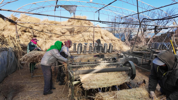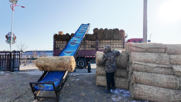 锡伯屯村是前郭县唯一的锡伯族聚居村,草编产业历史悠久、基础扎实。在图乌公路东侧的草编生产现场,机声隆隆、车辆穿梭,收购稻草、加工编织、装车外运等环节有序衔接。工人们将收购来的稻草,经过分拣、加工、编织等工序,制作成各类实用耐用的草编制品,昔日不起眼的废旧原料,摇身一变成为畅销产品。