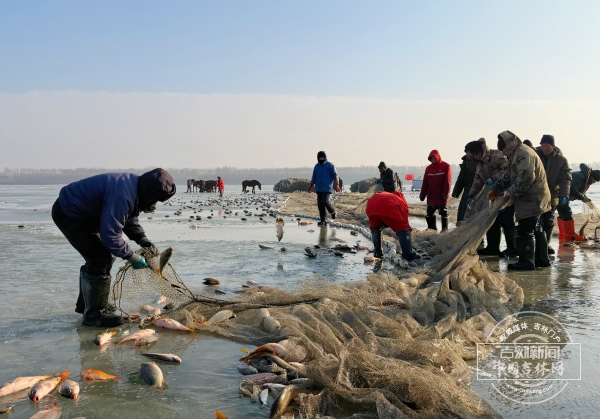12月19日,冰封千里的查干湖迎来今冬第一网,正式拉开冬捕序幕。